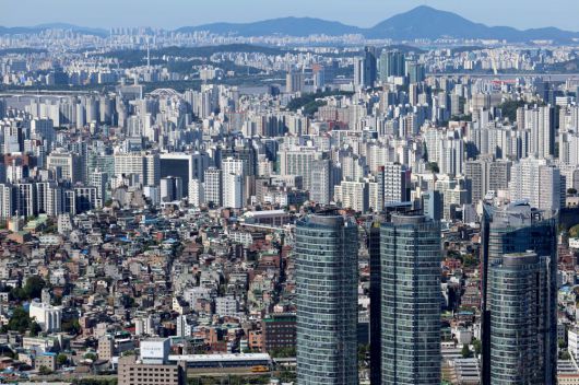 서울 남산에서 바라본 아파트와 주상복합 단지. 신태현 기자 holjjak@ |