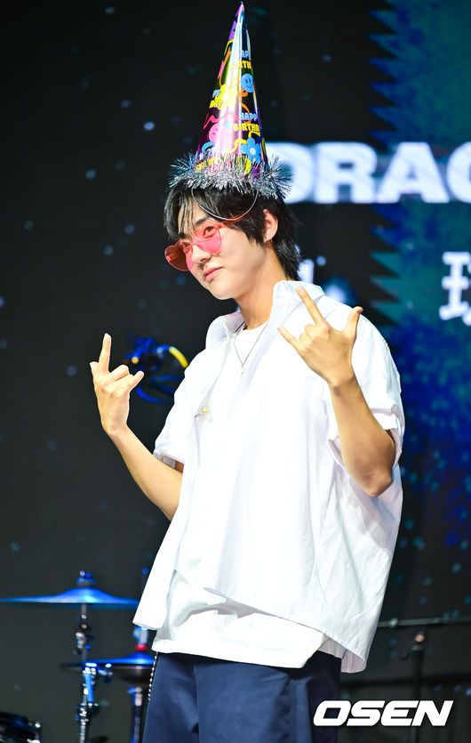 생일 맞은 드래곤포니 멤버 안태규가 생일 모자를 쓰고 포즈를 취하고 있다. 2025.07.29 / soul1014@osen.co.kr