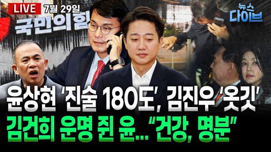 출연: 박영식 시사평론가, 이병철 변호사, 오윤혜 방송인, 신인규 변호사, 권태호 논설실장, 진행: 고현준. 김건희 특검 첫 소환에 불응한 윤석열...‘선택적 출석’ / ‘원수’에서 ‘공범’으로! 이준석 압수수색, 윤상현 조사 / ‘800억 수익에 개발부담금 0원?’...김건희 모친·오빠 공흥지구 특혜 ‘국고손실’ 혐의 적용 / ‘줄행랑’ 김건희 오빠...특검서 7시간 조사 후 귀가 / 윤 취임식 초청 명단, ‘3대 특검’ 수사 인물 총출동... 환갑잔치였나? / 내란 특검, 이상민에 구속영장 청구! 다음 타깃은 한덕수? 오늘 (7월 29일) 뉴스 다이브 많은 시청바랍니다. 제작: 뉴스영상부