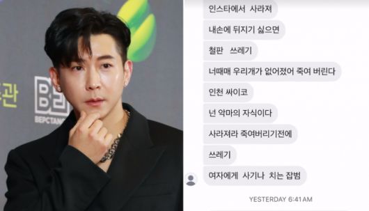 해당 메시지에는 "하루살이 벌레" "넌 소시오패스야" "지옥이나 가라 악마야" "내 손에 뒤지기 싫으면 사라져" "사라져라, 죽여버리기 전에" 등 원색적인 비난과 살해 협박성 글들이 적혔다.