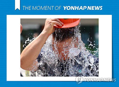 (서울=연합뉴스) 김도훈 기자 = 29일 서울 종로구 국정기획위원회 앞에서 열린 민주노총 건설노조 폭염 실태 기자회견이 끝난 뒤 참가자가 얼음물을 뒤집어쓰는 퍼포먼스를 하고 있다. 2025.7.29 [THE MOMENT OF YONHAPNEWS]
