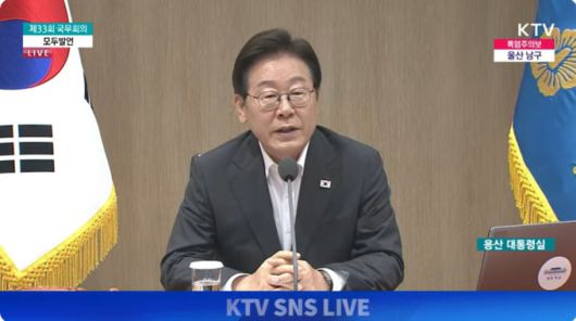 이재명 대통령이 29일 서울 용산 대통령실에서 제33회 국무회의를 주재하고 있다. 2025.7.29 [사진=KTV 캡처] |