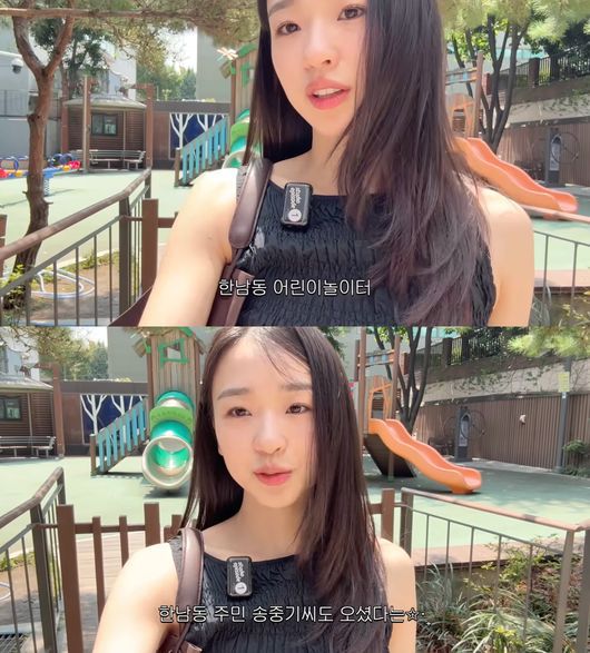 식사를 마친 손연재는 다음 장소로 이동하기 위해 앞서 언급했던 근처 놀이터를 지나쳤다. 그는 "여기가 준연이 노는 놀이터인데 여기가 한남동 어린이 놀이터라고. 송중기 씨도 왔었다는. 그런 놀이터다"라고 밝혀 눈길을 끌었다.
