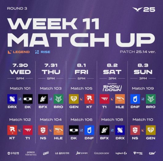 라이엇 게임즈가 개발 및 서비스하는 '리그 오브 레전드(LoL)'의 이스포츠 한국 프로 리그인 LCK를 주최하는 리그 오브 레전드 챔피언스 코리아(대표 오상헌, www.lolesports.com, 이하 'LCK')는 7월 30일(수)부터 8월 3일(일)까지 2025 LCK 3라운드 2주 차가 진행된다고 밝혔다.