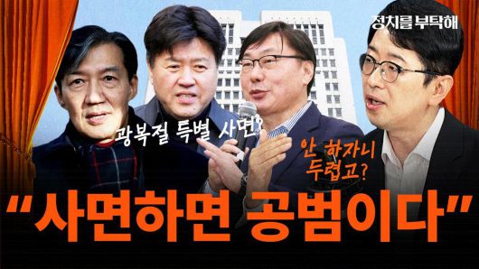 ▶ 주진우: 네 그래서 그런 거고요. 조국 전 장관은 좀 논의의 면을 달리하는데. 입시 비리나 채용 비리는 사면을 할 때 가장 먼저 제외시킵니다. 거의 살인 강도에 준한다고 보고. 왜냐하면 한 사람의 인생을 바꾸는 측면도 있고. 청년들의 일자리 문제가 대두되면서 불공정 이슈는 어떤 정권도 무시할 수 없는.
