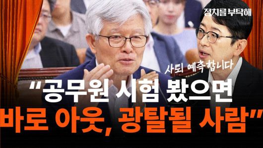 ▶ 주진우: 그렇죠. 윤리위원회를 떠나서 공직자로서 만약에 이분이 9급 공무원 시험을 봐서 면접을 봤으면 바로 아웃이죠. 광탈입니다. 광탈 그러니까 바로 탈락이고 그렇기 때문에 이분은 공직 유지가 어렵고 아마 하도 욕하신 분들이 많아서 그 욕 먹은 분들도 가만히 있을 것 같아요. 저는 그래서 저는 곧 사퇴할 것이라고 저는 예측합니다.