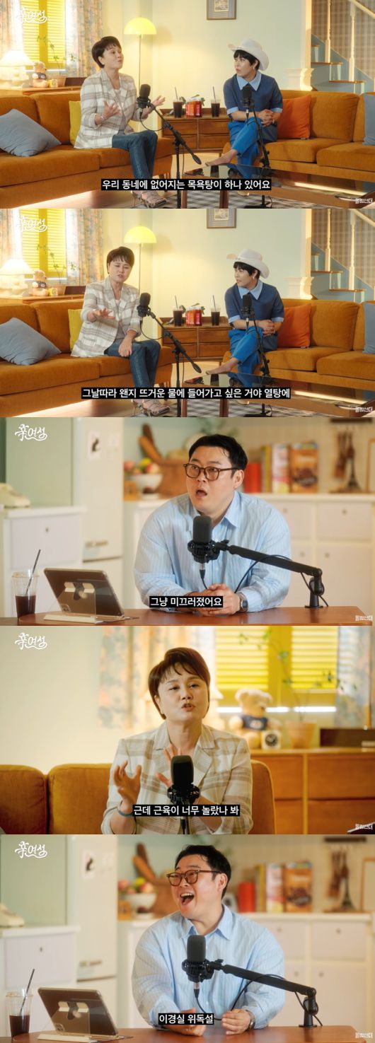 이어 이경실은 "저는 잘 지내다가 며칠 전에 우리 동네 없어지는 목욕탕이 하나 있다. 그게 너무 아쉬웠다. 그날따라 왠지 뜨거운 물에 들어가고 싶었다"라며 "족욕을 좀 하고 싶어서 족욕을 하고 나오다가 그냥 미끄러졌다"라고 말했다.