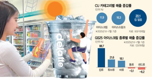 29일 업계에 따르면 편의점 CU의 올 6~7월 아이스크림 매출 신장률은 11.9%에 그친 반면, 컵얼음은 20.1%, 아이스드링크는 16.3% 증가하며 더 큰 폭으로 성장했다. 같은 기간 이마트24에서도 아이스크림 매출은 13% 늘었지만, 음료 매출은 14% 뛰었다. 업계 관계자는 “폭염이 일정 수준을 넘어서면 기본적으로 야외 활동이 줄면서 아이스크림 매출이 주춤하는 경향이 있다”면서 “너무 더우면 아이스크림보다는 즉각적으로 온도를 내리고 갈증을 해결할 수 있는 음료 제품에 대한 매출이 폭증한다”고 설명했다.