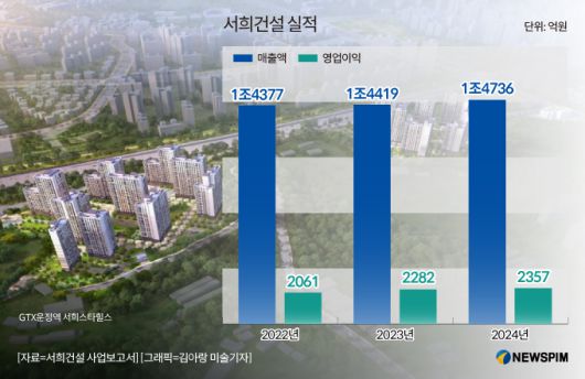 서희건설 실적. [그래픽=김아랑 미술기자] |