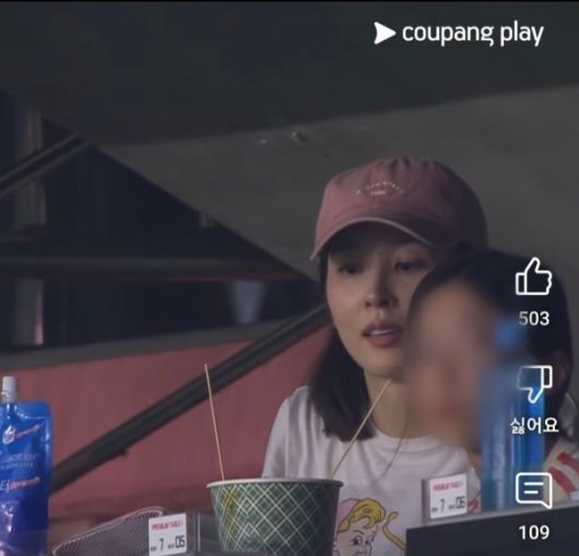 29일 온라인 커뮤니티에는 한혜진과 딸 시온 양이 중계 화면에 포착된 모습이 올라왔다.
