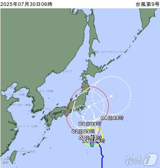 (서울=뉴스1) 유채연 기자 = 제9호 태풍 크로사가 8월 2일에서 3일 사이 일본 간토 지방에 접근할 것으로 보인다고 일본 날씨 매체 덴키가 30일 보도했다.