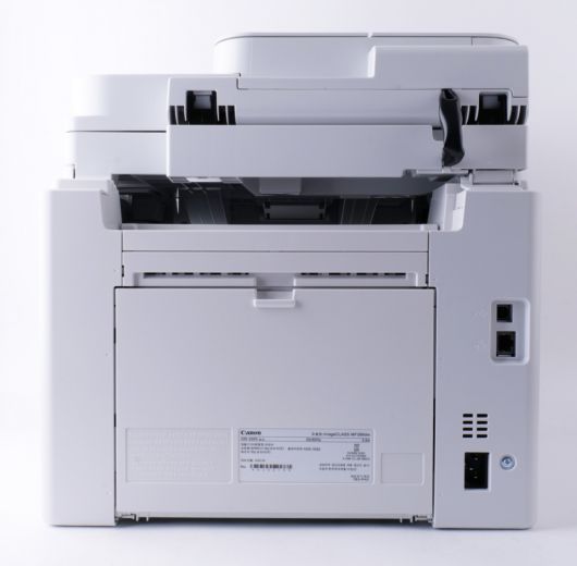 캐논 MF289dw는 외형부터 안정적인 무게감을 준다. 가로 약 390mm, 세로 399mm, 높이 390mm로 거의 정육면체에 가까운 디자인에 무게 약 13.4kg으로 책상에도 올려두기 적당하다. 특히 올 화이트 디자인으로 먼지, 지문, 얼룩으로부터 관리가 쉽고 화사한 사무환경을 조성할 수 있다.