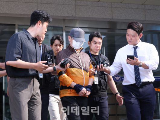 모자와 마스크를 쓰고 얼굴을 가린 조씨는 땅을 쳐다보거나 주변을 살펴보면서 취재진의 질문에 대응하지 않았다.