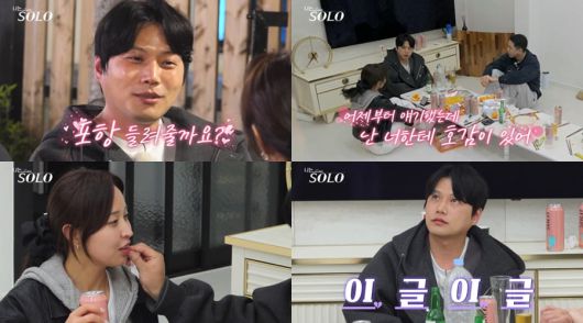 앞서 영철은 자신의 고향이 포항이라며 정숙에게 ‘지연’으로 적극 어필을 해왔던 터. 이날 영철은 자신 외에 다른 남자들이 정숙에게 관심을 두자, 아예 직접적으로 마음을 표현하며 다른이들을 견제한다. 특히 그는 정숙을 찾아가, “(정숙의 호감남) 바운더리 안에 제가 있냐?”고 정확히 묻고, “차 타고 (‘솔로나라’에) 왔냐?”는 정숙의 질문에 “그렇다. (‘나는 SOLO’ 촬영 마친 후) 포항에 들렀다가 갈까?”라고 플러팅을 한다.