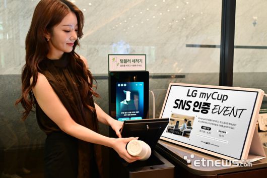 LG전자가 텀블러 사용 문화 확산을 위해 텀블러 전용 세척기 'LG 마이컵(myCup)' 사용 인증 이벤트를 연다.