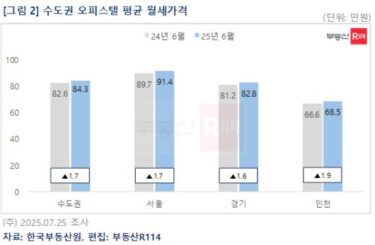 경기 역시 같은 면적대에서 평균 1만 6000원이 올랐고, 인천은 84㎡ 초과 대형 오피스텔이 2만 5000원, 40㎡ 이하 초소형 오피스텔이 2만 1000원 올라 평균 1만 9000원 오른 것으로 나타났다.