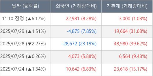 ※ 사모펀드 등 일부 기관의 순매매량은 표시되지 않음