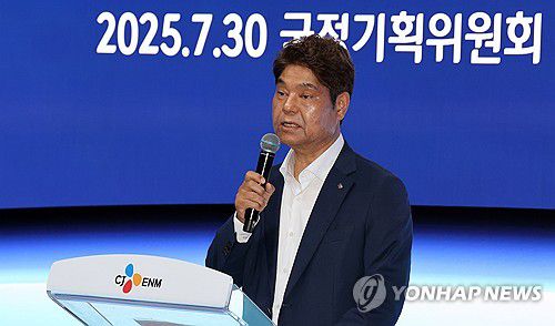 (서울=연합뉴스) 허민회 CJ 경영지원대표가 30일 경기 파주시 탄현면 CJ ENM 스튜디오를 찾은 정태호 국정기획위원회 경제1분과장과 위원들 앞에서 인사말을 하고 있다. 2025.7.30 [사진공동취재단]