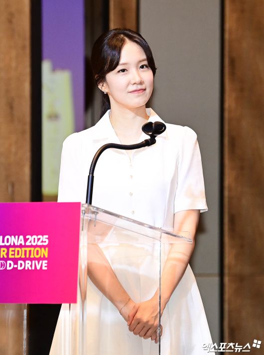 (엑스포츠뉴스 박지영 기자) 30일 오후 서울 당주동 포시즌스 호텔에서 진행된 'FC 바르셀로나 2025 아시아 투어 에디션' 공식 기자회견에 참석한 장예원 아나운서가 인사하고 있다.박지영 기자 jypark@xportsnews.com