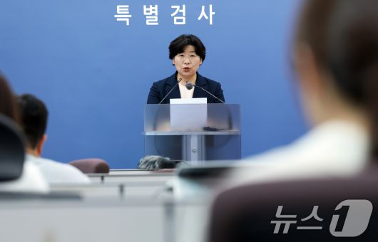 12·3 비상계엄' 관련 내란·외환 사건을 수사하는 내란특검팀 박지영 특검보가 15일 오후 서울 서초구 서울고등검찰청에 마련된 내란특검 사무실에서 정례 브리핑을 하고 있다. 2025.7.15/뉴스1 ⓒ News1 오대일 기자 |