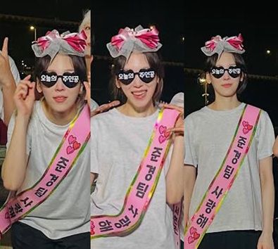 공개된 사진 속 서현진은 마지막 촬영을 축하하며 '인간화환'을 준비한 스태프들 사이 '오늘의 주인공'이라는 선글라스를 쓰고 인싸임을 인증해 웃음을 자아낸다.