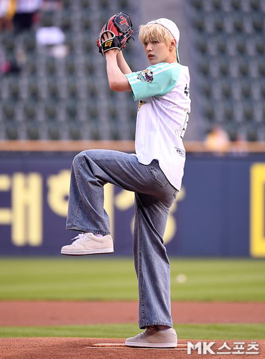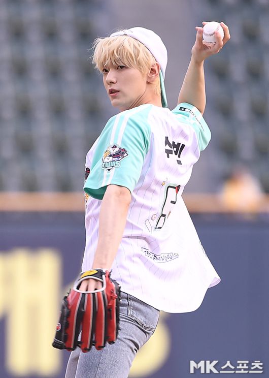 투모로우바이투게더 수빈이 반전 시구 컷으로 야구장을 들썩이게 했다. 사진=천정환 기자 |