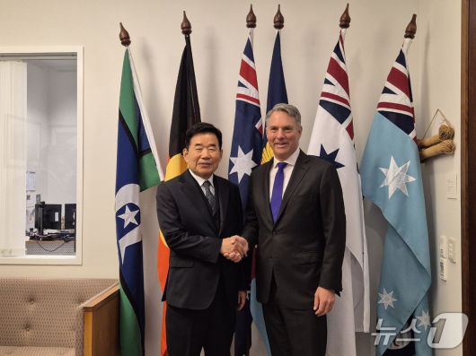 (서울=뉴스1) 정윤영 기자 = 김진표 전 국회의장을 단장으로 한 대통령 호주 특사단이 29일부터 31일까지 호주의 캔버라와 시드니를 방문해 리차드 말스 부총리 겸 국방장관 및 페니 웡 외교장관과 면담을 가졌다.