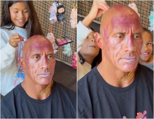 존슨은 29일(현지시간) 자신의 인스타그램에 두 딸 자스민(9)과 티아나(6)가 아버지의 얼굴과 머리에 직접 메이크업을 해주는 모습을 담은 영상을 공개했다. 영상 속 그는 얌전히 의자에 앉아 머리 전체가 반짝이는 핫핑크로 칠해지고 입술도 연한 분홍빛으로 물드는 과정을 묵묵히 받아들이는 모습이었다. 메이크업이 아닌 낙서같은 분위기.