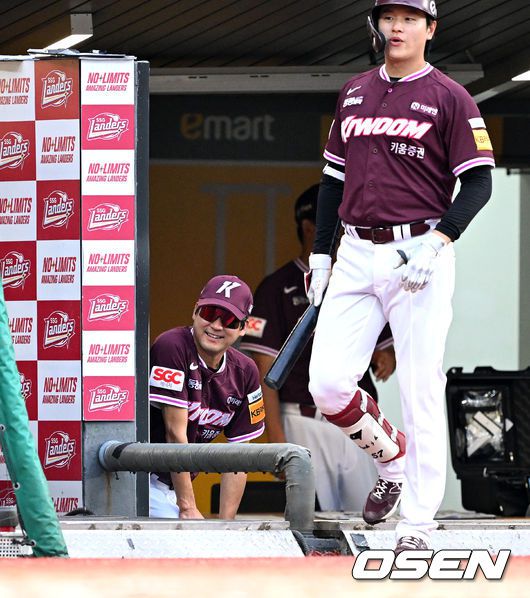 [OSEN=인천, 이대선 기자] 30일 오후 인천 SSG랜더스필드에서 2025 신한 SOL Bank KBO리그 SSG 랜더스와 키움 히어로즈의 경기가 열렸다. SSG는 문승원, 키움은 정현우를 선발 투수로 내세웠다. 3회초 무사 2루에서 키움 카디네스의 우전 적시타 때 설종진 감독 대행이 2루주자 송성문 득점에 미소짓고 있다. 2025.07.30 /sunday@osen.co.kr