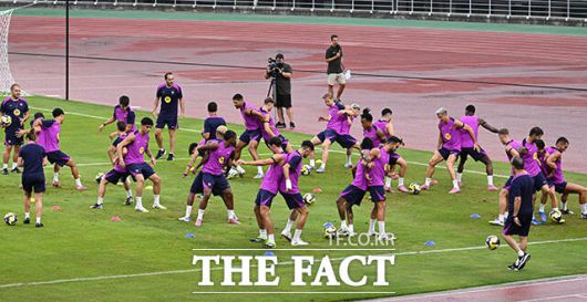 [더팩트|고양종합운동장=박헌우 기자] FC바르셀로나 선수단이 30일 오후 경기 고양시 고양종합운동장에서 훈련하고 있다.