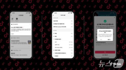 왼쪽부터 콘텐츠 업로드 알림·개인정보 보호 설정·콘텐츠 신고 알림 화면(틱톡 제공) |
