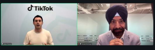 30일 '디스커버 앤 런(Discover & Learn): 틱톡의 신뢰와 안전' 온라인 브리핑에 아담 프레서 틱톡 '신뢰와 안전' 글로벌 총괄(좌)과 푸닛 팔 싱 틱톡 커뮤니케이션 글로벌 총괄(우)이 참여했다./사진=온라인 캡처 |
