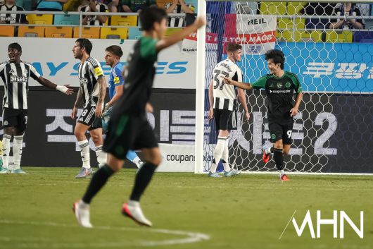 (MHN 수원, 박태성 기자) '2025 쿠팡플레이 시리즈' 잉글랜드 프리미어리그 뉴캐슬 유나이티드 FC 와 K리그 XI 경기가 30일 오후 수원월드컵경기장에서 열렸다. K리그 XI 김진규가 득점을 성공시킨 후 낚시 세리머니를 시전하고 있다. <저작권자 Copyright ⓒ MHN / 엠에이치앤 무단전재 및 재배포 금지>