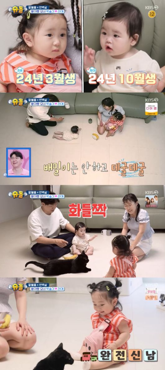 박수홍의 집에 깜짝 손님도 찾아왔다. 박슬기와 지난해 3월 태어난 둘째 딸 리예였다. 10월 생인 박수홍의 딸 재이와 7개월 차이가 나는 용띠 친구였다. 박수홍은 "용띠 동갑이잖아. 둘이 커서 좋은 친구가 되면 정말 좋겠다"고 흐뭇해했다.