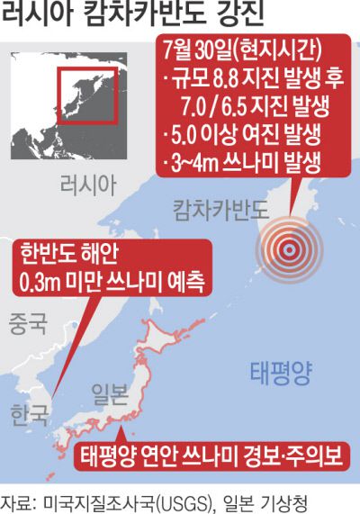 한국 기상청 관계자는 “캄차카반도 강진이 국내에 미치는 영향은 없을 것으로 보인다”고 말했다.