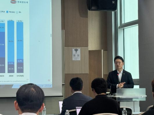 발표 중인 김정영 한미반도체 부사장. 연합뉴스 |