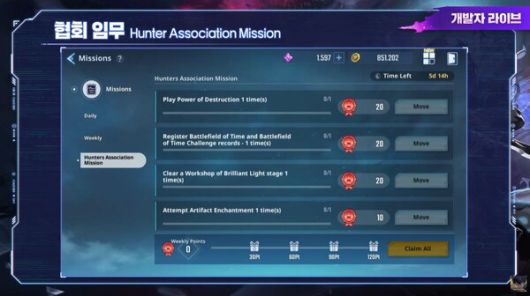 협회 임무는 새로 추가되는 주간 미션으로, 성장 격차를 완화하기 위한 콘텐츠다.