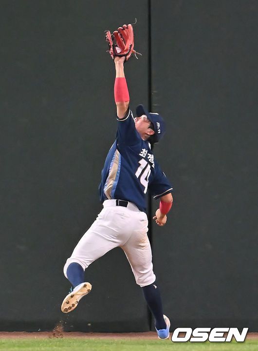 [OSEN=부산, 이석우 기자] 30일 부산 사직야구장에서 2025 신한 SOL 뱅크 KBO 리그 롯데 자이언츠와 NC 다이노스의 경기가 열렸다. 홈팀 롯데는 감보아가, 방문팀 NC는 목지훈이 선발 출전했다. NC 다이노스 최정원이 8회말 무사 1루 롯데 자이언츠 한태양의 타구를 잡고 있다. 2025.07.30 / foto0307@osen.co.kr