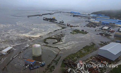 쓰나미에 침수된 사할린 세베로-쿠릴스크 |