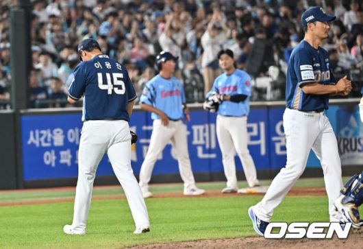[OSEN=부산, 이석우 기자] 30일 부산 사직야구장에서 2025 신한 SOL 뱅크 KBO 리그 롯데 자이언츠와 NC 다이노스의 경기가 열렸다. 홈팀 롯데는 감보아가, 방문팀 NC는 목지훈이 선발 출전했다. NC 다이노스 이용찬이 9회말 1사 만루 실점위기서 교체되고 있다. 2025.07.30 / foto0307@osen.co.kr