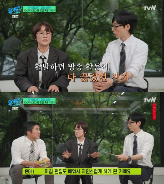 송은이는 “갑자기 백수가 됐는데 백수가 된 걸 1년 있다가 알았다. 우리는 일이 많을 때도, 적을 때도 있지 않냐. 개편의 흐름을 타다가 나를 불러주겠지 했는데 1년이 지났더라”라고 말했다. 이어 “내가 빨리 접하게 된 게 뉴미디어고 마침 편집도 배우고 있어서 자연스럽게 하게 됐다”고 했다.