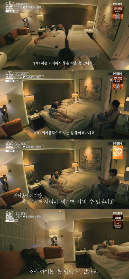 정혁은 "아직까지는 좋은 짝을 못 만났다. 워커홀릭으로 사는 걸 좋아해서"라며 "워커홀릭인데 그 안에서 내가 좋아하는 사람이 생기면 우선순위가 바뀔 수 있지 않냐. 그런 상황이 되면 좋은데 아직까지는 없던 것 같다"고 털어놨다.