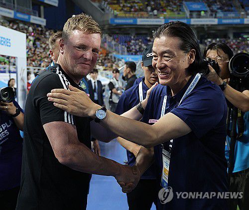 김 감독과 이정효 수석코치(광주FC 감독)가 지휘한 K리그 올스타 격인 '팀 K리그'는 이날 뉴캐슬과의 경기에서 1-0으로 이겼다. 전반 36분 미드필더 김진규(전북)의 선제 결승 골을 잘 지켜냈다.