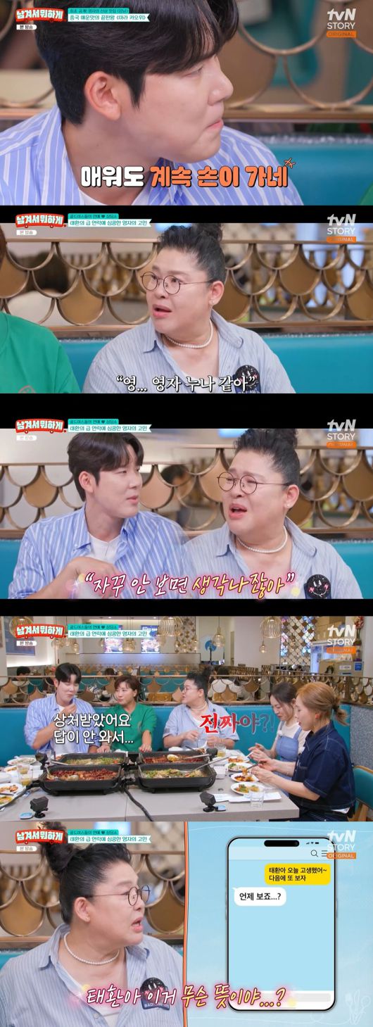 이어 박태환은 "상처받았다. 답이 안 와서. 문자했지 않냐"라며 문자에 답장이 없었던 이영자를 언급했다.