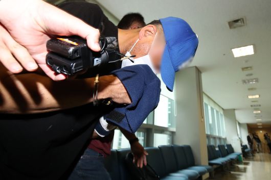 지난 22일 대구 달서구의 한 아파트에 침입해 스토킹하던 50대 여성을 흉기로 살해하고 도주한 혐의로 구속 기소된 윤정우 씨(48)가 국민참여재판 신청을 철회했다. 사진은 구속 전 피의자심문(영장실질심사)에 출석한 윤 씨 모습./뉴스1 |