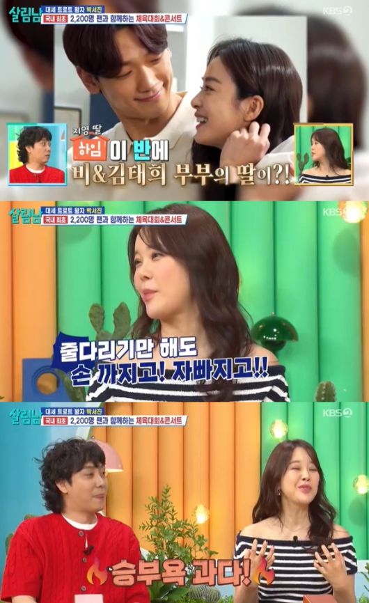 과거 백지영은 KBS 2TV '살림남2'에서 "딸 하임이가 비 김태희 부부의 딸과 같은 반이다. 최근에 체육대회를 했는데 아빠들이 승부욕 때문에 난리가 났었다. 줄다리기를 하는데 자빠지고 난리가 났다"는 일화를 밝힌 바 있다.