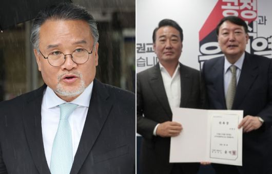 (왼쪽부터)삼부토건 주가조작 혐의로 구속된 이일준 삼부토건 회장·이영수 전 KMDC 회장·윤석열 당시 대선 후보. 연합뉴스·국민의힘 윤석열 캠프 제공 |