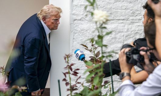 스코틀랜드 일정을 마무리하고 귀국한 도널드 트럼프 미국 대통령이 29일(현지시각) 워싱턴 백악관 로즈가든 근처에서 취재진의 질문에 답변하고 있다. 워싱턴/UPI 연합뉴스 |