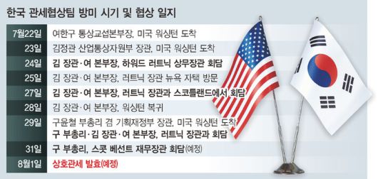 정부는 이 밖에도 미국산 에너지 구매 확대, 농축산물과 디지털 분야 등의 비관세 장벽 조정, 미국 제조업 부흥의 파트너 역할 등을 협상 카드로 제시해 설득을 하고 있다. 김용범 대통령실 정책실장은 30일 브리핑에서 조선 분야 외에도 “반도체라 할지, 2차전지라 할지, 바이오라 할지 이런 부분에 대한 논의도 이어가고 있다”고 했다. 강유정 대통령실 대변인도 이날 서면 브리핑을 내 “감내 가능한 범위 내에서, 한-미 간 상호호혜적 성과를 낼 수 있는 분야를 중심으로 패키지를 마련해 미국과 협의하고 있다”고 막판 상황을 전했다.