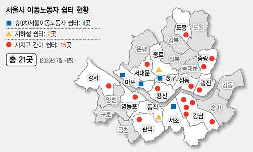 주말엔 문 닫는 쉼터…해 피하려 조각 그늘 찾아